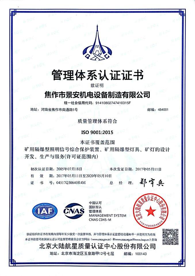 焦作市景安機電設(shè)備制造有限公司(原焦作市無線電一廠),是國家重點生產(chǎn)礦用防爆電子電器產(chǎn)品的專業(yè)企業(yè),全國煤炭行業(yè)機電產(chǎn)品定點生產(chǎn)單位,中國電器工業(yè)協(xié)會防爆電氣分會理事,市級礦用隔爆型工程技術(shù)中心,公司占地30000平方米,廠房10000平方米,ISO9001:2008質(zhì)量管理體系和A級計量認證企業(yè)。